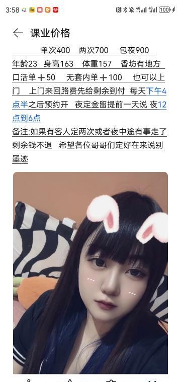 之前在道外的妹妹 现在回香坊这边了 妹妹自己有地方 00年的 身高163 体重157 属于中坦型胸是真的大 一个手抓不下的那种 人照8分像 口活单➕50 可以无☔单➕100