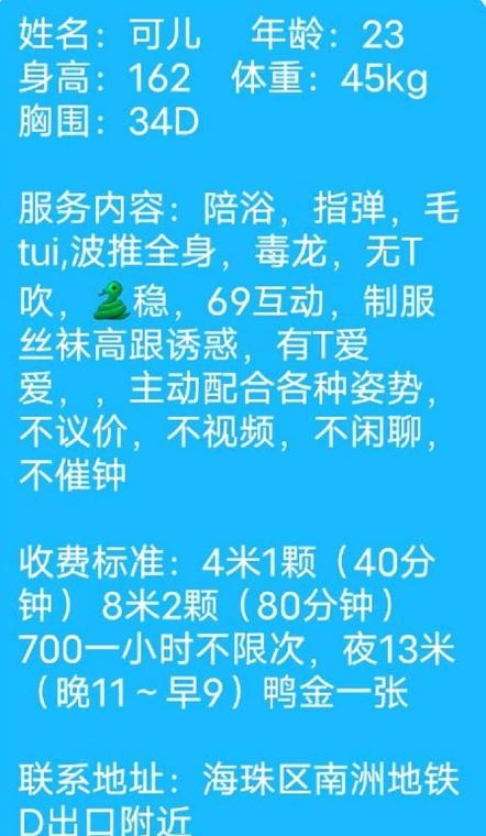 没有踩坑,二百块钱快餐太值得了,性价比真的很高。一进门的话就问喝不喝水,然后的话就去洗澡。我选的一个快餐又加一个套餐,套餐一起洗澡,帮你亲自去洗,洗了之后我们就躺到床上,然后后就进行胸推,漫游,特别是这个深喉,哎呀,太爽,,舔的全身都是酥酥麻麻的,太爽了。这个胸哈,是真有手感,。软软的。我是一个胸控,但是都没来得及及时间去摸。然后水也很多,很配合,不会敷衍了事。有兄弟们可以去试一下,性价比真的很高了。身材bbw。就是皮肤很滑,,不踩坑,兄弟们可以去冲,服务没得说,酥酥麻麻的,薇朩QQ加不上的,直接打电话联系老师,老师本人自己开课,靠谱