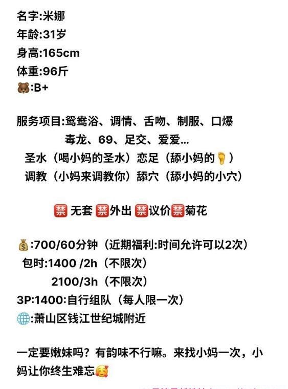 没有踩坑,二百块钱快餐太值得了,性价比真的很高。一进门的话就问喝不喝水,然后的话就去洗澡。我选的一个快餐又加一个套餐,套餐一起洗澡,帮你亲自去洗,洗了之后我们就躺到床上,然后后就进行胸推,漫游,特别是这个深喉,哎呀,太爽,,舔的全身都是酥酥麻麻的,太爽了。这个胸哈,是真有手感,。软软的。我是一个胸控,但是都没来得及及时间去摸。然后水也很多,很配合,不会敷衍了事。有兄弟们可以去试一下,性价比真的很高了。身材bbw。就是皮肤很滑,,不踩坑,兄弟们可以去冲,服务没得说,酥酥麻麻的,薇朩QQ加不上的,直接打电话联系老师,老师本人自己开课,靠谱