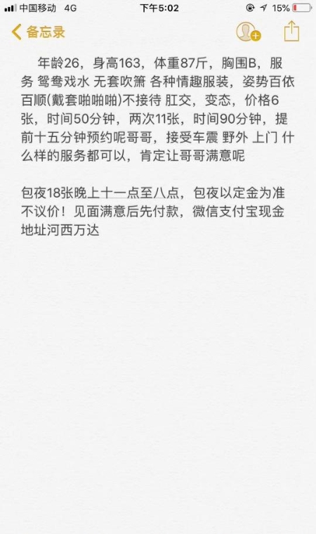 没有踩坑,二百块钱快餐太值得了,性价比真的很高。一进门的话就问喝不喝水,然后的话就去洗澡。我选的一个快餐又加一个套餐,套餐一起洗澡,帮你亲自去洗,洗了之后我们就躺到床上,然后后就进行胸推,漫游,特别是这个深喉,哎呀,太爽,,舔的全身都是酥酥麻麻的,太爽了。这个胸哈,是真有手感,。软软的。我是一个胸控,但是都没来得及及时间去摸。然后水也很多,很配合,不会敷衍了事。有兄弟们可以去试一下,性价比真的很高了。身材bbw。就是皮肤很滑,,不踩坑,兄弟们可以去冲,服务没得说,酥酥麻麻的,薇朩QQ加不上的,直接打电话联系老师,老师本人自己开课,靠谱
