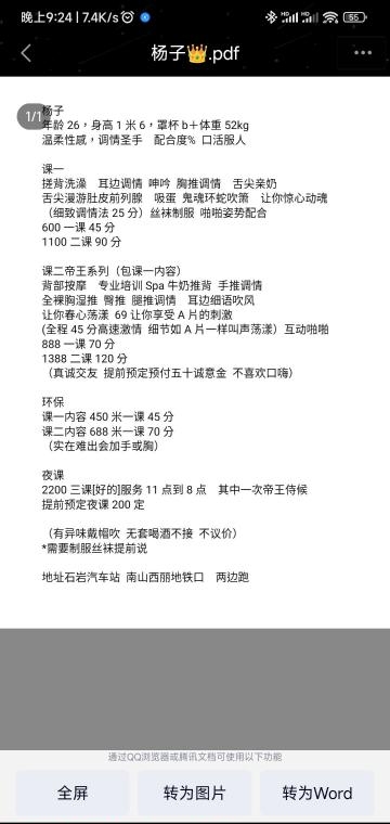 没有踩坑,二百块钱快餐太值得了,性价比真的很高。一进门的话就问喝不喝水,然后的话就去洗澡。我选的一个快餐又加一个套餐,套餐一起洗澡,帮你亲自去洗,洗了之后我们就躺到床上,然后后就进行胸推,漫游,特别是这个深喉,哎呀,太爽,,舔的全身都是酥酥麻麻的,太爽了。这个胸哈,是真有手感,。软软的。我是一个胸控,但是都没来得及及时间去摸。然后水也很多,很配合,不会敷衍了事。有兄弟们可以去试一下,性价比真的很高了。身材bbw。就是皮肤很滑,,不踩坑,兄弟们可以去冲,服务没得说,酥酥麻麻的,薇朩QQ加不上的,直接打电话联系老师,老师本人自己开课,靠谱