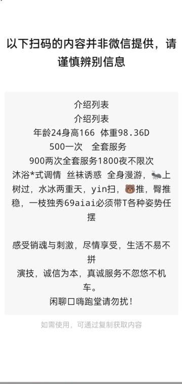 没有踩坑,二百块钱快餐太值得了,性价比真的很高。一进门的话就问喝不喝水,然后的话就去洗澡。我选的一个快餐又加一个套餐,套餐一起洗澡,帮你亲自去洗,洗了之后我们就躺到床上,然后后就进行胸推,漫游,特别是这个深喉,哎呀,太爽,,舔的全身都是酥酥麻麻的,太爽了。这个胸哈,是真有手感,。软软的。我是一个胸控,但是都没来得及及时间去摸。然后水也很多,很配合,不会敷衍了事。有兄弟们可以去试一下,性价比真的很高了。身材bbw。就是皮肤很滑,,不踩坑,兄弟们可以去冲,服务没得说,酥酥麻麻的,薇朩QQ加不上的,直接打电话联系老师,老师本人自己开课,靠谱