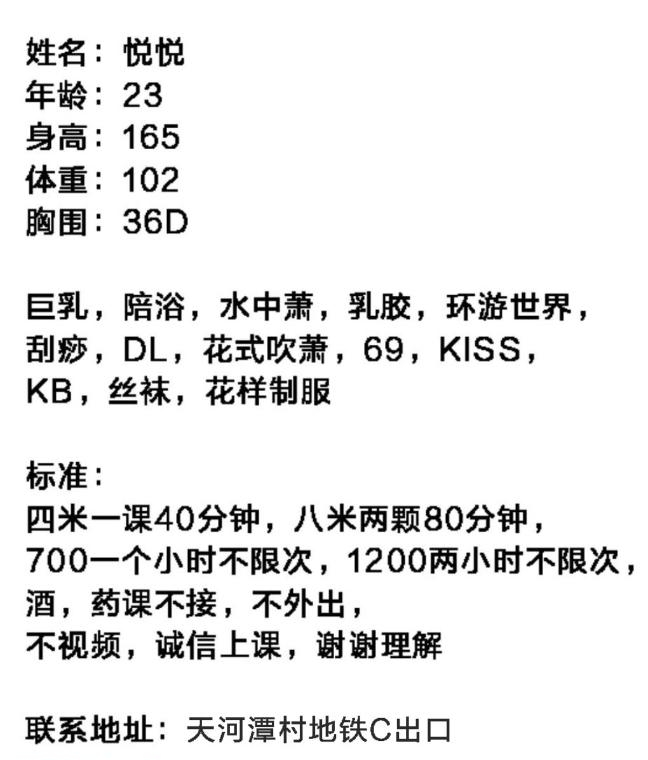 没有踩坑,二百块钱快餐太值得了,性价比真的很高。一进门的话就问喝不喝水,然后的话就去洗澡。我选的一个快餐又加一个套餐,套餐一起洗澡,帮你亲自去洗,洗了之后我们就躺到床上,然后后就进行胸推,漫游,特别是这个深喉,哎呀,太爽,,舔的全身都是酥酥麻麻的,太爽了。这个胸哈,是真有手感,。软软的。我是一个胸控,但是都没来得及及时间去摸。然后水也很多,很配合,不会敷衍了事。有兄弟们可以去试一下,性价比真的很高了。身材bbw。就是皮肤很滑,,不踩坑,兄弟们可以去冲,服务没得说,酥酥麻麻的,薇朩QQ加不上的,直接打电话联系老师,老师本人自己开课,靠谱