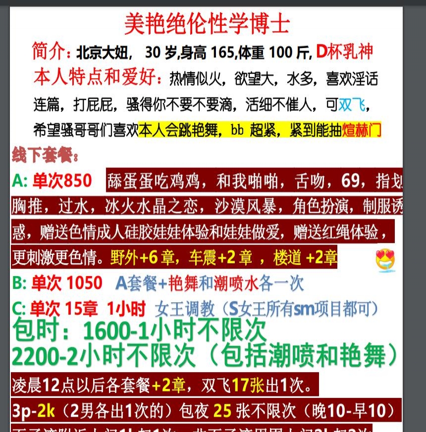 服务项目: 单次850 更刺激更色情 野外+6章 车震+2章