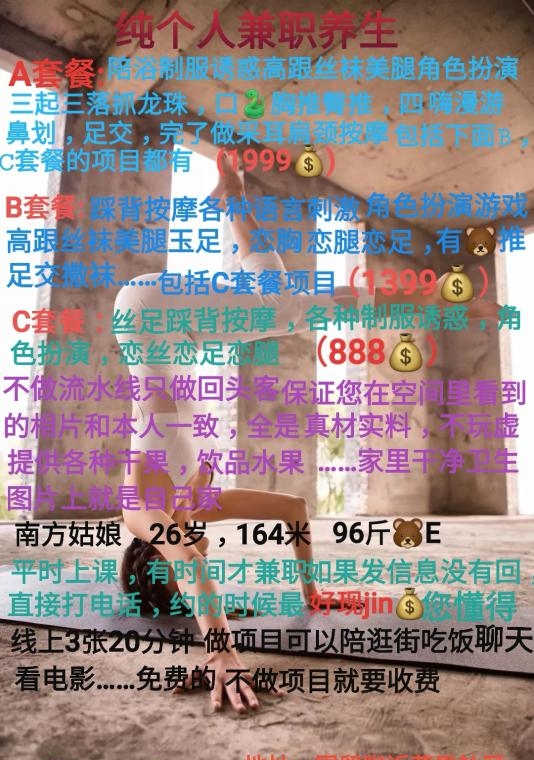 没有踩坑,二百块钱快餐太值得了,性价比真的很高。一进门的话就问喝不喝水,然后的话就去洗澡。我选的一个快餐又加一个套餐,套餐一起洗澡,帮你亲自去洗,洗了之后我们就躺到床上,然后后就进行胸推,漫游,特别是这个深喉,哎呀,太爽,,舔的全身都是酥酥麻麻的,太爽了。这个胸哈,是真有手感,。软软的。我是一个胸控,但是都没来得及及时间去摸。然后水也很多,很配合,不会敷衍了事。有兄弟们可以去试一下,性价比真的很高了。身材bbw。就是皮肤很滑,,不踩坑,兄弟们可以去冲,服务没得说,酥酥麻麻的,薇朩QQ加不上的,直接打电话联系老师,老师本人自己开课,靠谱