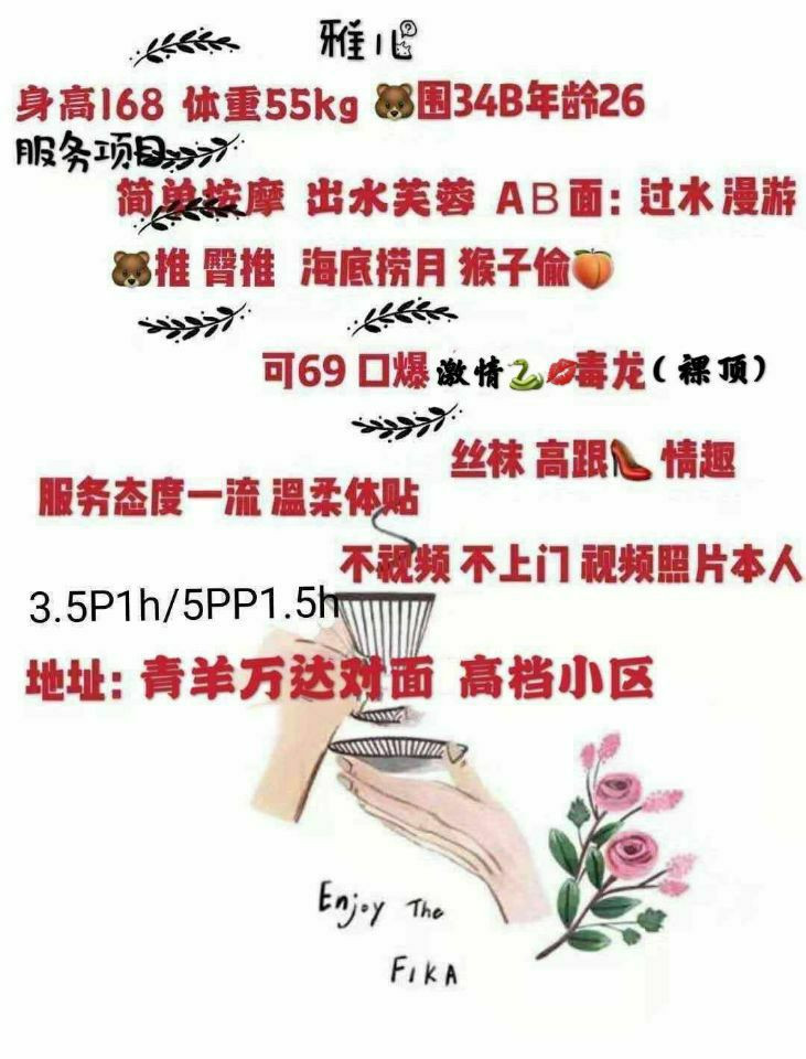 没有踩坑,二百块钱快餐太值得了,性价比真的很高。一进门的话就问喝不喝水,然后的话就去洗澡。我选的一个快餐又加一个套餐,套餐一起洗澡,帮你亲自去洗,洗了之后我们就躺到床上,然后后就进行胸推,漫游,特别是这个深喉,哎呀,太爽,,舔的全身都是酥酥麻麻的,太爽了。这个胸哈,是真有手感,。软软的。我是一个胸控,但是都没来得及及时间去摸。然后水也很多,很配合,不会敷衍了事。有兄弟们可以去试一下,性价比真的很高了。身材bbw。就是皮肤很滑,,不踩坑,兄弟们可以去冲,服务没得说,酥酥麻麻的,薇朩QQ加不上的,直接打电话联系老师,老师本人自己开课,靠谱