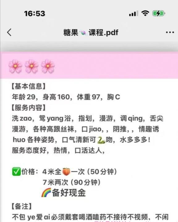 没有踩坑,二百块钱快餐太值得了,性价比真的很高。一进门的话就问喝不喝水,然后的话就去洗澡。我选的一个快餐又加一个套餐,套餐一起洗澡,帮你亲自去洗,洗了之后我们就躺到床上,然后后就进行胸推,漫游,特别是这个深喉,哎呀,太爽,,舔的全身都是酥酥麻麻的,太爽了。这个胸哈,是真有手感,。软软的。我是一个胸控,但是都没来得及及时间去摸。然后水也很多,很配合,不会敷衍了事。有兄弟们可以去试一下,性价比真的很高了。身材bbw。就是皮肤很滑,,不踩坑,兄弟们可以去冲,服务没得说,酥酥麻麻的,薇朩QQ加不上的,直接打电话联系老师,老师本人自己开课,靠谱