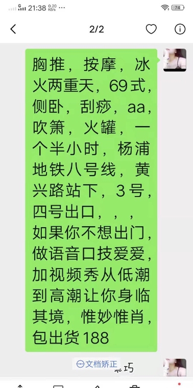 没有踩坑,二百块钱快餐太值得了,性价比真的很高。一进门的话就问喝不喝水,然后的话就去洗澡。我选的一个快餐又加一个套餐,套餐一起洗澡,帮你亲自去洗,洗了之后我们就躺到床上,然后后就进行胸推,漫游,特别是这个深喉,哎呀,太爽,,舔的全身都是酥酥麻麻的,太爽了。这个胸哈,是真有手感,。软软的。我是一个胸控,但是都没来得及及时间去摸。然后水也很多,很配合,不会敷衍了事。有兄弟们可以去试一下,性价比真的很高了。身材bbw。就是皮肤很滑,,不踩坑,兄弟们可以去冲,服务没得说,酥酥麻麻的,薇朩QQ加不上的,直接打电话联系老师,老师本人自己开课,靠谱