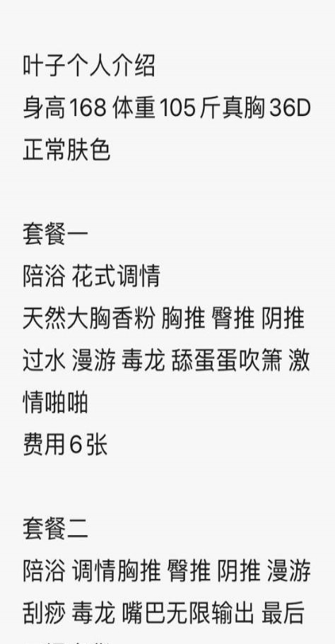没有踩坑,二百块钱快餐太值得了,性价比真的很高。一进门的话就问喝不喝水,然后的话就去洗澡。我选的一个快餐又加一个套餐,套餐一起洗澡,帮你亲自去洗,洗了之后我们就躺到床上,然后后就进行胸推,漫游,特别是这个深喉,哎呀,太爽,,舔的全身都是酥酥麻麻的,太爽了。这个胸哈,是真有手感,。软软的。我是一个胸控,但是都没来得及及时间去摸。然后水也很多,很配合,不会敷衍了事。有兄弟们可以去试一下,性价比真的很高了。身材bbw。就是皮肤很滑,,不踩坑,兄弟们可以去冲,服务没得说,酥酥麻麻的,薇朩QQ加不上的,直接打电话联系老师,老师本人自己开课,靠谱