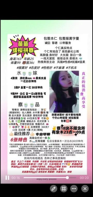 没有踩坑,二百块钱快餐太值得了,性价比真的很高。一进门的话就问喝不喝水,然后的话就去洗澡。我选的一个快餐又加一个套餐,套餐一起洗澡,帮你亲自去洗,洗了之后我们就躺到床上,然后后就进行胸推,漫游,特别是这个深喉,哎呀,太爽,,舔的全身都是酥酥麻麻的,太爽了。这个胸哈,是真有手感,。软软的。我是一个胸控,但是都没来得及及时间去摸。然后水也很多,很配合,不会敷衍了事。有兄弟们可以去试一下,性价比真的很高了。身材bbw。就是皮肤很滑,,不踩坑,兄弟们可以去冲,服务没得说,酥酥麻麻的,薇朩QQ加不上的,直接打电话联系老师,老师本人自己开课,靠谱
