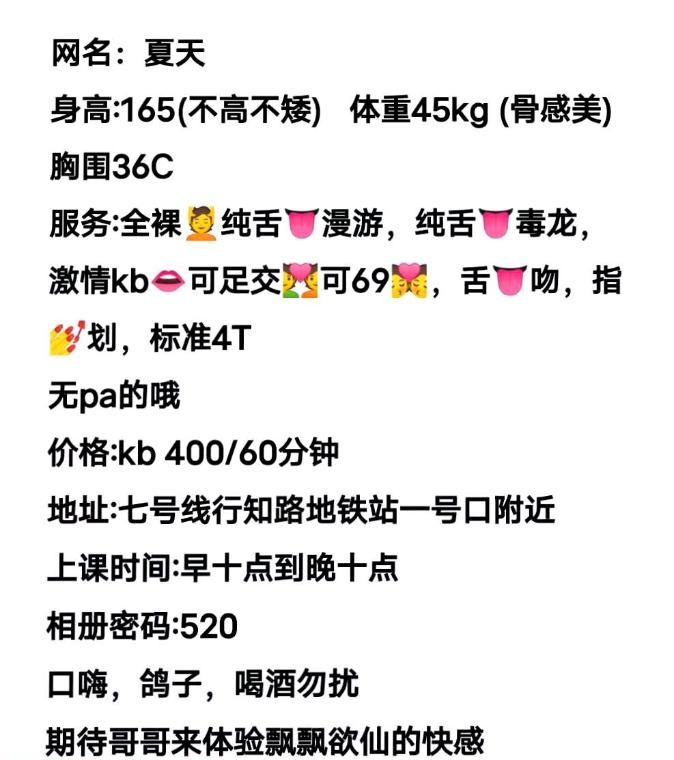 没有踩坑,二百块钱快餐太值得了,性价比真的很高。一进门的话就问喝不喝水,然后的话就去洗澡。我选的一个快餐又加一个套餐,套餐一起洗澡,帮你亲自去洗,洗了之后我们就躺到床上,然后后就进行胸推,漫游,特别是这个深喉,哎呀,太爽,,舔的全身都是酥酥麻麻的,太爽了。这个胸哈,是真有手感,。软软的。我是一个胸控,但是都没来得及及时间去摸。然后水也很多,很配合,不会敷衍了事。有兄弟们可以去试一下,性价比真的很高了。身材bbw。就是皮肤很滑,,不踩坑,兄弟们可以去冲,服务没得说,酥酥麻麻的,薇朩QQ加不上的,直接打电话联系老师,老师本人自己开课,靠谱