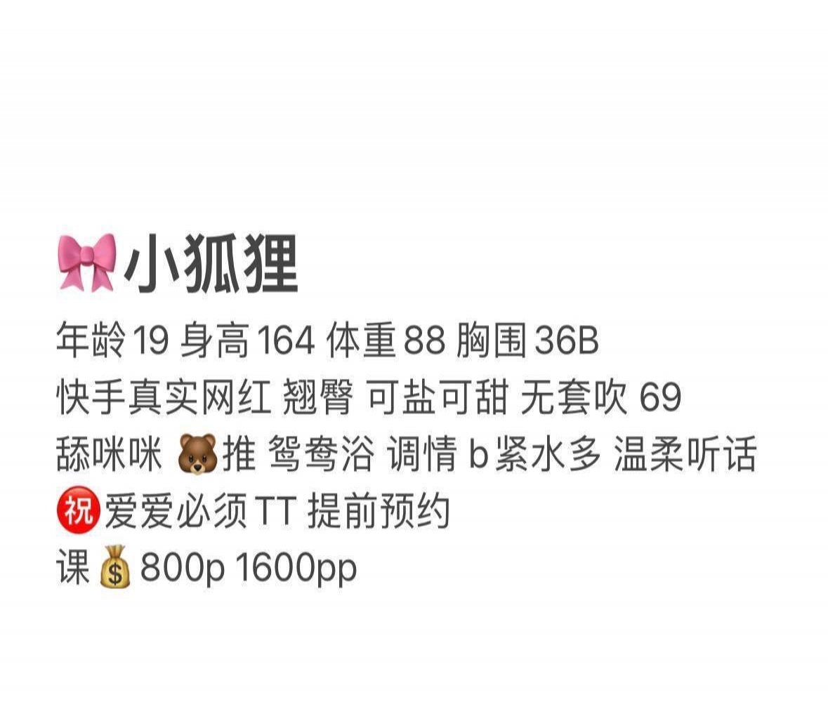 没有踩坑,二百块钱快餐太值得了,性价比真的很高。一进门的话就问喝不喝水,然后的话就去洗澡。我选的一个快餐又加一个套餐,套餐一起洗澡,帮你亲自去洗,洗了之后我们就躺到床上,然后后就进行胸推,漫游,特别是这个深喉,哎呀,太爽,,舔的全身都是酥酥麻麻的,太爽了。这个胸哈,是真有手感,。软软的。我是一个胸控,但是都没来得及及时间去摸。然后水也很多,很配合,不会敷衍了事。有兄弟们可以去试一下,性价比真的很高了。身材bbw。就是皮肤很滑,,不踩坑,兄弟们可以去冲,服务没得说,酥酥麻麻的,薇朩QQ加不上的,直接打电话联系老师,老师本人自己开课,靠谱