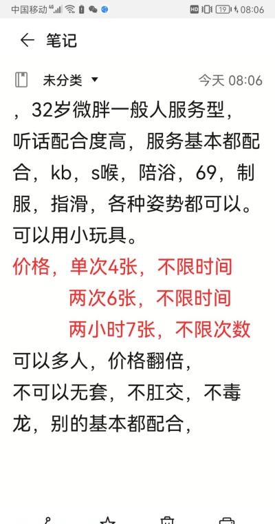 没有踩坑,二百块钱快餐太值得了,性价比真的很高。一进门的话就问喝不喝水,然后的话就去洗澡。我选的一个快餐又加一个套餐,套餐一起洗澡,帮你亲自去洗,洗了之后我们就躺到床上,然后后就进行胸推,漫游,特别是这个深喉,哎呀,太爽,,舔的全身都是酥酥麻麻的,太爽了。这个胸哈,是真有手感,。软软的。我是一个胸控,但是都没来得及及时间去摸。然后水也很多,很配合,不会敷衍了事。有兄弟们可以去试一下,性价比真的很高了。身材bbw。就是皮肤很滑,,不踩坑,兄弟们可以去冲,服务没得说,酥酥麻麻的,薇朩QQ加不上的,直接打电话联系老师,老师本人自己开课,靠谱