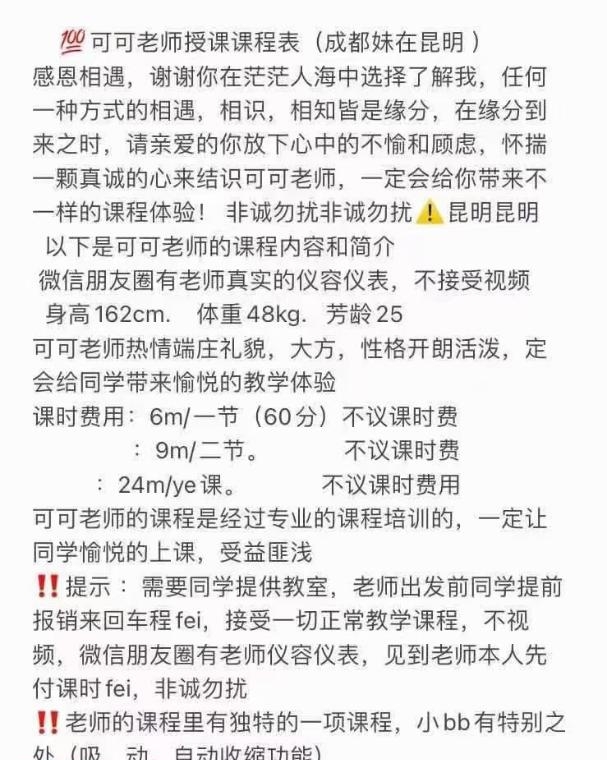 没有踩坑,二百块钱快餐太值得了,性价比真的很高。一进门的话就问喝不喝水,然后的话就去洗澡。我选的一个快餐又加一个套餐,套餐一起洗澡,帮你亲自去洗,洗了之后我们就躺到床上,然后后就进行胸推,漫游,特别是这个深喉,哎呀,太爽,,舔的全身都是酥酥麻麻的,太爽了。这个胸哈,是真有手感,。软软的。我是一个胸控,但是都没来得及及时间去摸。然后水也很多,很配合,不会敷衍了事。有兄弟们可以去试一下,性价比真的很高了。身材bbw。就是皮肤很滑,,不踩坑,兄弟们可以去冲,服务没得说,酥酥麻麻的,薇朩QQ加不上的,直接打电话联系老师,老师本人自己开课,靠谱