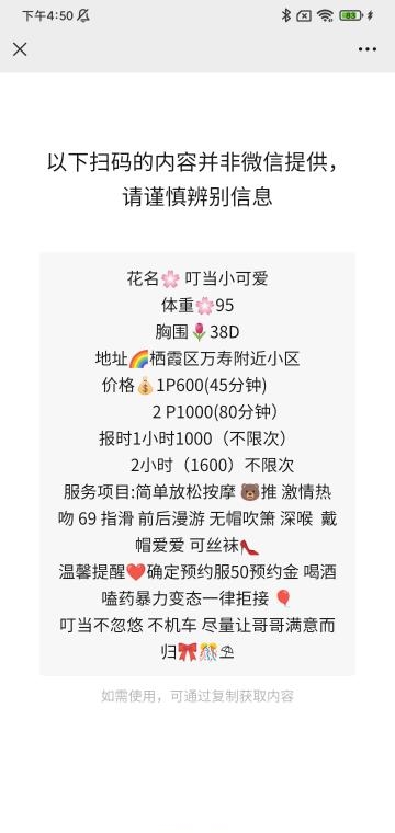 没有踩坑,二百块钱快餐太值得了,性价比真的很高。一进门的话就问喝不喝水,然后的话就去洗澡。我选的一个快餐又加一个套餐,套餐一起洗澡,帮你亲自去洗,洗了之后我们就躺到床上,然后后就进行胸推,漫游,特别是这个深喉,哎呀,太爽,,舔的全身都是酥酥麻麻的,太爽了。这个胸哈,是真有手感,。软软的。我是一个胸控,但是都没来得及及时间去摸。然后水也很多,很配合,不会敷衍了事。有兄弟们可以去试一下,性价比真的很高了。身材bbw。就是皮肤很滑,,不踩坑,兄弟们可以去冲,服务没得说,酥酥麻麻的,薇朩QQ加不上的,直接打电话联系老师,老师本人自己开课,靠谱