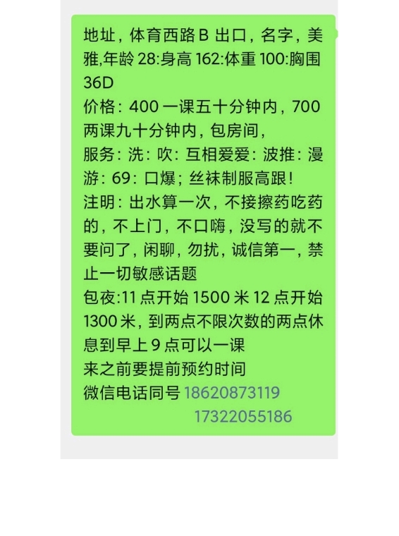 没有踩坑,二百块钱快餐太值得了,性价比真的很高。一进门的话就问喝不喝水,然后的话就去洗澡。我选的一个快餐又加一个套餐,套餐一起洗澡,帮你亲自去洗,洗了之后我们就躺到床上,然后后就进行胸推,漫游,特别是这个深喉,哎呀,太爽,,舔的全身都是酥酥麻麻的,太爽了。这个胸哈,是真有手感,。软软的。我是一个胸控,但是都没来得及及时间去摸。然后水也很多,很配合,不会敷衍了事。有兄弟们可以去试一下,性价比真的很高了。身材bbw。就是皮肤很滑,,不踩坑,兄弟们可以去冲,服务没得说,酥酥麻麻的,薇朩QQ加不上的,直接打电话联系老师,老师本人自己开课,靠谱