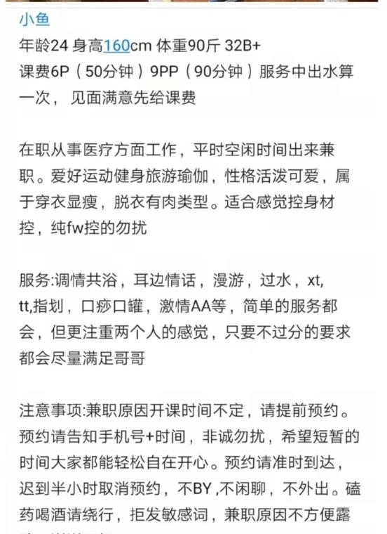 没有踩坑,二百块钱快餐太值得了,性价比真的很高。一进门的话就问喝不喝水,然后的话就去洗澡。我选的一个快餐又加一个套餐,套餐一起洗澡,帮你亲自去洗,洗了之后我们就躺到床上,然后后就进行胸推,漫游,特别是这个深喉,哎呀,太爽,,舔的全身都是酥酥麻麻的,太爽了。这个胸哈,是真有手感,。软软的。我是一个胸控,但是都没来得及及时间去摸。然后水也很多,很配合,不会敷衍了事。有兄弟们可以去试一下,性价比真的很高了。身材bbw。就是皮肤很滑,,不踩坑,兄弟们可以去冲,服务没得说,酥酥麻麻的,薇朩QQ加不上的,直接打电话联系老师,老师本人自己开课,靠谱