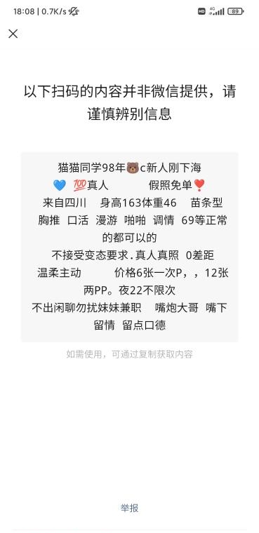 没有踩坑,二百块钱快餐太值得了,性价比真的很高。一进门的话就问喝不喝水,然后的话就去洗澡。我选的一个快餐又加一个套餐,套餐一起洗澡,帮你亲自去洗,洗了之后我们就躺到床上,然后后就进行胸推,漫游,特别是这个深喉,哎呀,太爽,,舔的全身都是酥酥麻麻的,太爽了。这个胸哈,是真有手感,。软软的。我是一个胸控,但是都没来得及及时间去摸。然后水也很多,很配合,不会敷衍了事。有兄弟们可以去试一下,性价比真的很高了。身材bbw。就是皮肤很滑,,不踩坑,兄弟们可以去冲,服务没得说,酥酥麻麻的,薇朩QQ加不上的,直接打电话联系老师,老师本人自己开课,靠谱