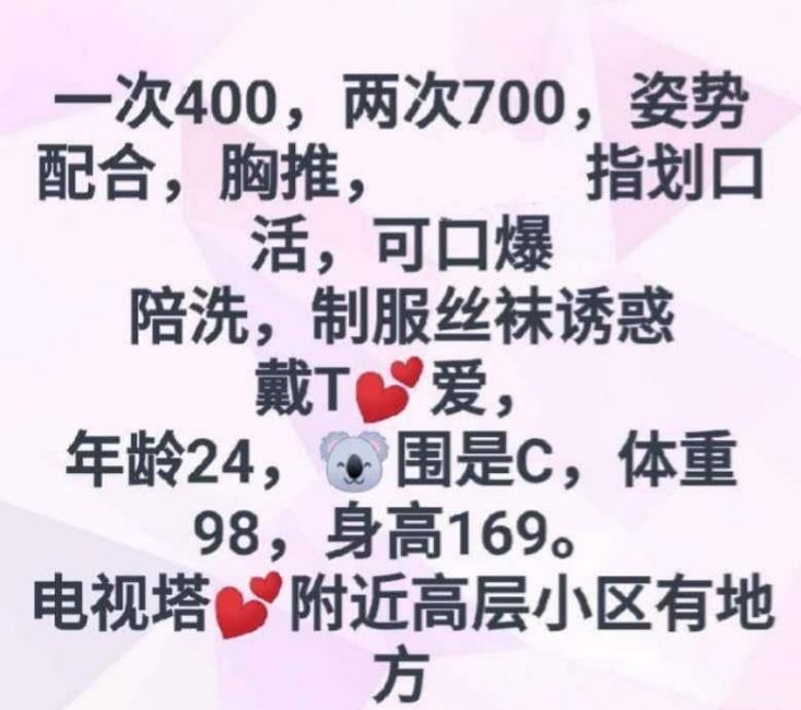 没有踩坑,二百块钱快餐太值得了,性价比真的很高。一进门的话就问喝不喝水,然后的话就去洗澡。我选的一个快餐又加一个套餐,套餐一起洗澡,帮你亲自去洗,洗了之后我们就躺到床上,然后后就进行胸推,漫游,特别是这个深喉,哎呀,太爽,,舔的全身都是酥酥麻麻的,太爽了。这个胸哈,是真有手感,。软软的。我是一个胸控,但是都没来得及及时间去摸。然后水也很多,很配合,不会敷衍了事。有兄弟们可以去试一下,性价比真的很高了。身材bbw。就是皮肤很滑,,不踩坑,兄弟们可以去冲,服务没得说,酥酥麻麻的,薇朩QQ加不上的,直接打电话联系老师,老师本人自己开课,靠谱