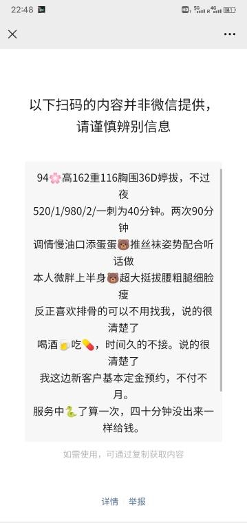 没有踩坑,二百块钱快餐太值得了,性价比真的很高。一进门的话就问喝不喝水,然后的话就去洗澡。我选的一个快餐又加一个套餐,套餐一起洗澡,帮你亲自去洗,洗了之后我们就躺到床上,然后后就进行胸推,漫游,特别是这个深喉,哎呀,太爽,,舔的全身都是酥酥麻麻的,太爽了。这个胸哈,是真有手感,。软软的。我是一个胸控,但是都没来得及及时间去摸。然后水也很多,很配合,不会敷衍了事。有兄弟们可以去试一下,性价比真的很高了。身材bbw。就是皮肤很滑,,不踩坑,兄弟们可以去冲,服务没得说,酥酥麻麻的,薇朩QQ加不上的,直接打电话联系老师,老师本人自己开课,靠谱