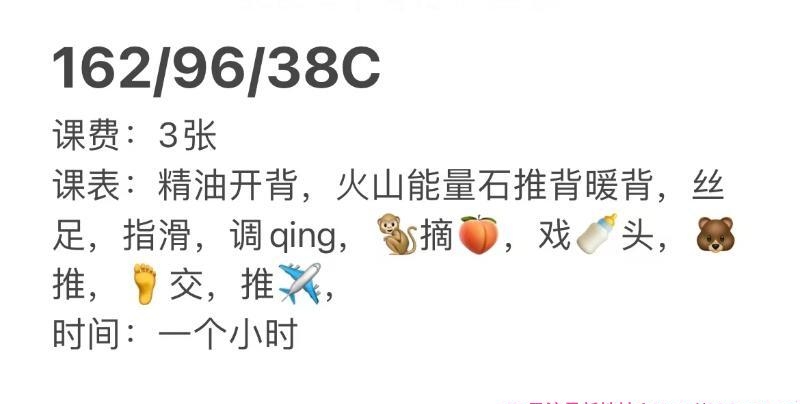 没有踩坑,二百块钱快餐太值得了,性价比真的很高。一进门的话就问喝不喝水,然后的话就去洗澡。我选的一个快餐又加一个套餐,套餐一起洗澡,帮你亲自去洗,洗了之后我们就躺到床上,然后后就进行胸推,漫游,特别是这个深喉,哎呀,太爽,,舔的全身都是酥酥麻麻的,太爽了。这个胸哈,是真有手感,。软软的。我是一个胸控,但是都没来得及及时间去摸。然后水也很多,很配合,不会敷衍了事。有兄弟们可以去试一下,性价比真的很高了。身材bbw。就是皮肤很滑,,不踩坑,兄弟们可以去冲,服务没得说,酥酥麻麻的,薇朩QQ加不上的,直接打电话联系老师,老师本人自己开课,靠谱